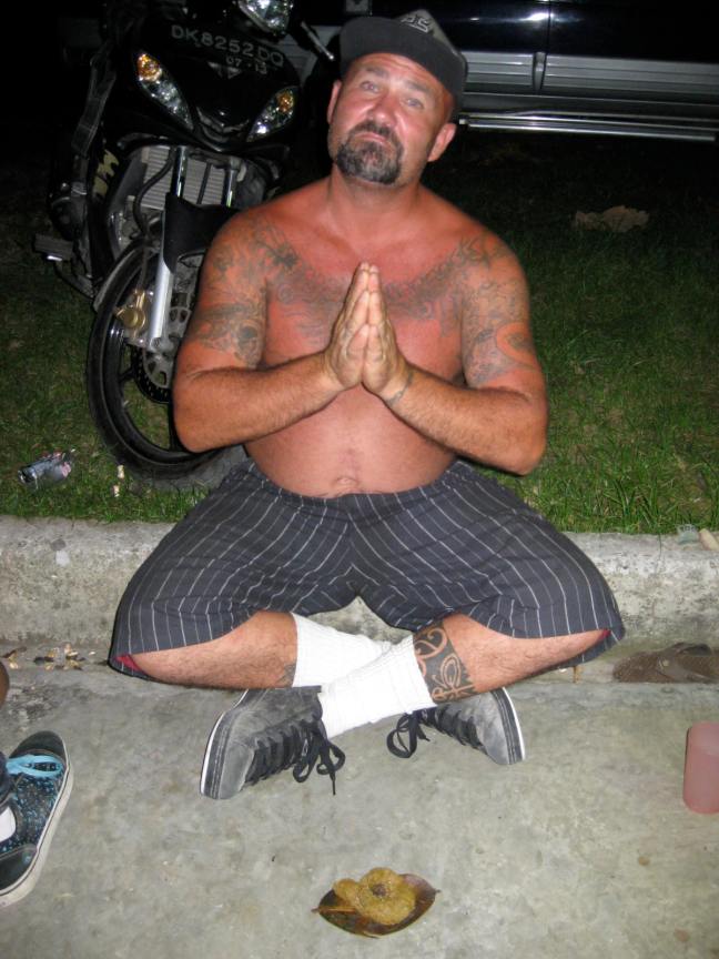 jaya brandall prays to his master.